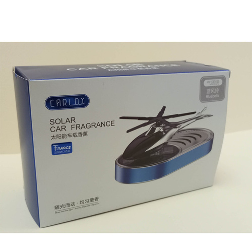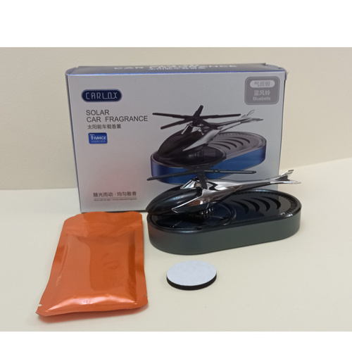 خوشبو کننده هلی کوپتر جز جدید ترین خوشبو کننده داخل خودرو می باشد که به وسیله انرژی خورشید و نور بدون نیاز به باطری و شارژ باعث چرخش پره های هلی کوپتر میشود و داخل خودرو و روی هر سطح صاف دیگری قابل استفاده میباشد.