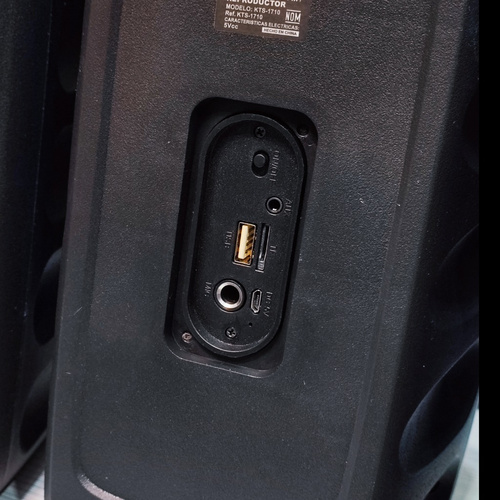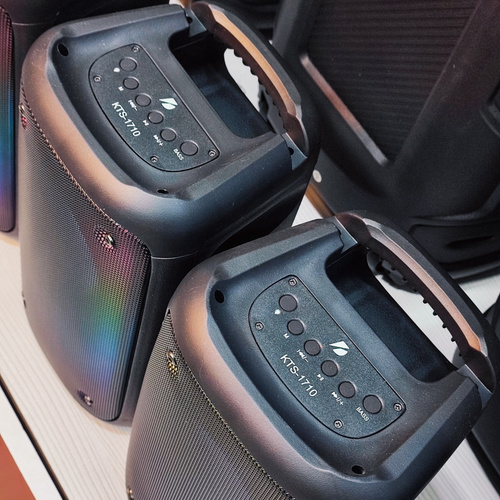 اسپیکر بلوتوثی قابل حمل مدل KTS-1710 یک محصول با ابعاد 15x29x13 سانتی متر می باشد که باتوجه به کیفیت مناسبی که دارد از قیمت معقولی برخوردار است.این اسپیکر دستی و قابل حمل دارای 2 باند 3 اینچی می باشد که صدای خروجی بسیار خوبی دارد. بدنه این محصول از جنس پلاستیک می باشد که در نمای بالا یک صفحه کلید شامل دکمه های توقف، پخش، قبلی و بعدی و … با دسترسی بهتر برای کنترل آسان در نظر گرفته شده است. همچنین یک فرورفتگی برای قرارگیری دست در آن تعبیه شده است. از مزیت های این دستگاه وجود نورپردازی RGB می باشد که با LED های خوش رنگ و با کیفیت، نوردهی زیبایی را انجام می دهد و می توان در مواقع دلخواه آن ها را تنظیم کرده و خاموش و روشن نمود. اسپیکر بلوتوثی قابل حمل مدل KTS-1710 دارای یک باطری لیتیومی از نوع شارژی با ظرفیت 1800 میلی آمپر می باشد که برای استفاده در طبیعت و خارج از منزل کاربردی است. این باطری توسط کابل شارژ microUSB شارژ می گردد که در بسته بندی محصول قرار گرفته است.این بلندگو با پشتیبانی از بلوتوث قابلیت سازگاری با تمام دستگاه ها مانند تلفن همراه، تبلت و… با سیستم عامل های IOS و اندروید را دارد. همچنین امکان پخش از طریق فلش و کارت حافظه و درگاه میکروفن در آن فراهم می باشد.